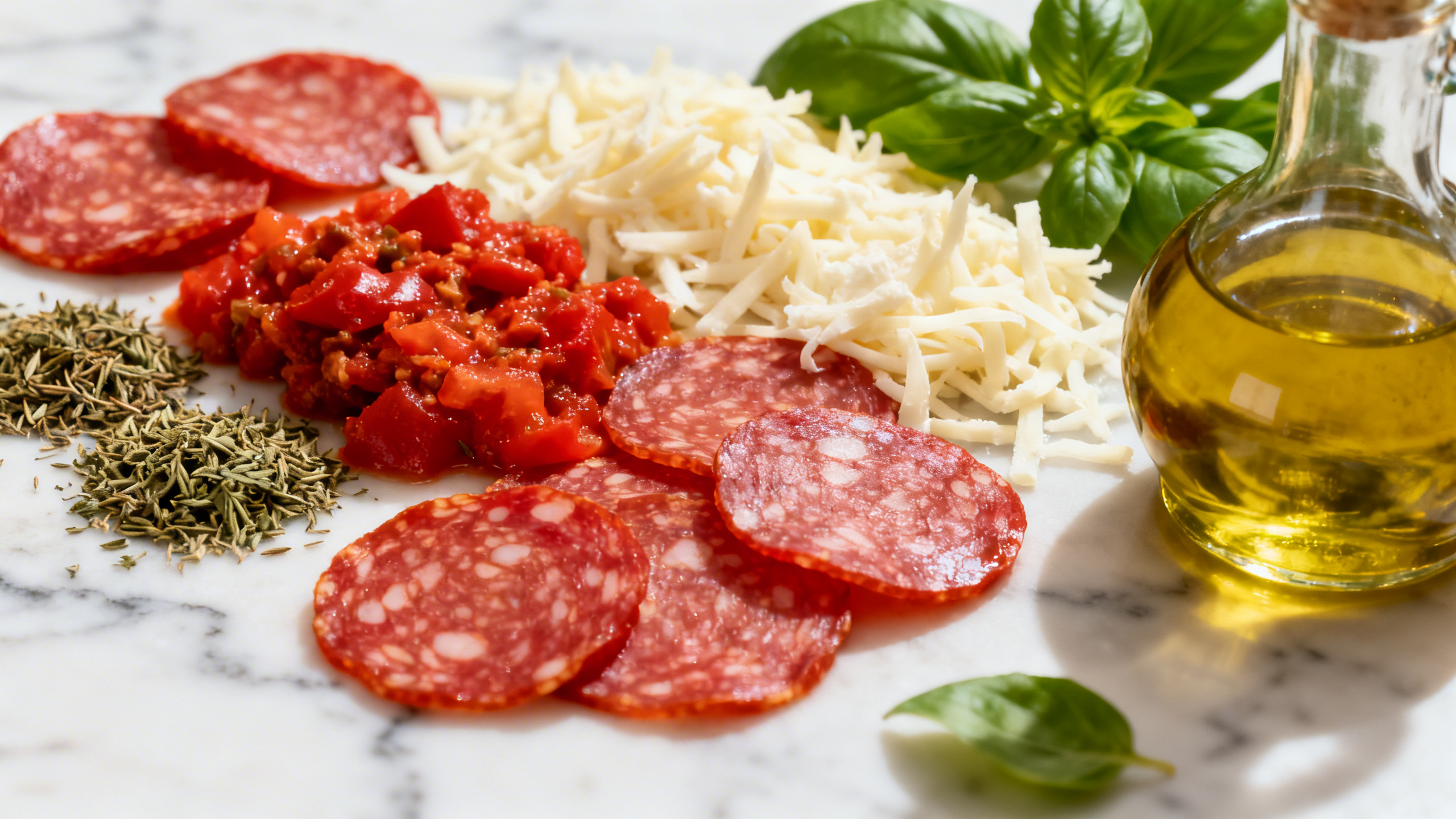 Ail en poudre, origan séché, une petite touche de sucre pour calmer l’acidité. L’idée, c’est que la sauce soutienne le pepperoni sans lui voler la scène.